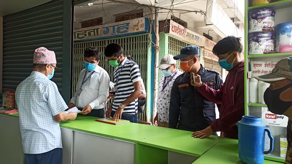 पाँच वटा औषधी पसलको अनुगमन गर्दा चारवटाले त सर्जिकल माक्स खरिद गरेको विल समेत देखाएनन । ९० रुपियाँ खरिद मूल्य रहेको सेनिटाइजर १ सय ६५ रुपियाँमा बेचेको पाइएको छ । राजश्व प्रशासन शाखा प्रमुख नविन भट्टराईले तत्काललाई बढि मुनाफा राखेर नबेच्न सचेत गराइएको, सर्जिकल माक्स पाँच रुपियाँ भन्दा बढिमा नबेच्न निर्देशन दिइएको बताए ।
