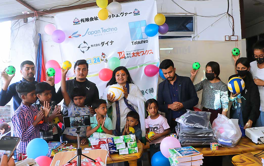 शनिबार जापानमा रहेको टेक्नोद्वारा विश्वव्यापी रुपमा सञ्चालित ”वन बल कनेक्ट अभियान अन्तरगत मायाघरका बालबालिकाहरुलाई विभिन्न सामाग्री वितरण गरेको हो ।