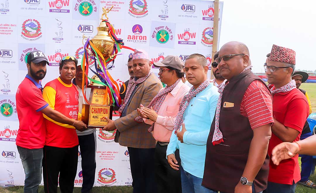 विराटनगर–१९ मा रहेको झापा वैजनाथपुरको खेल मैदानमा (शनिबार) भएको फाइनल खेलमा प्रदेश २ कै जनकपुर उपमहानगरपालिकालाई १० रनले पराजित गर्दै उपाधि हात पारेको हो ।