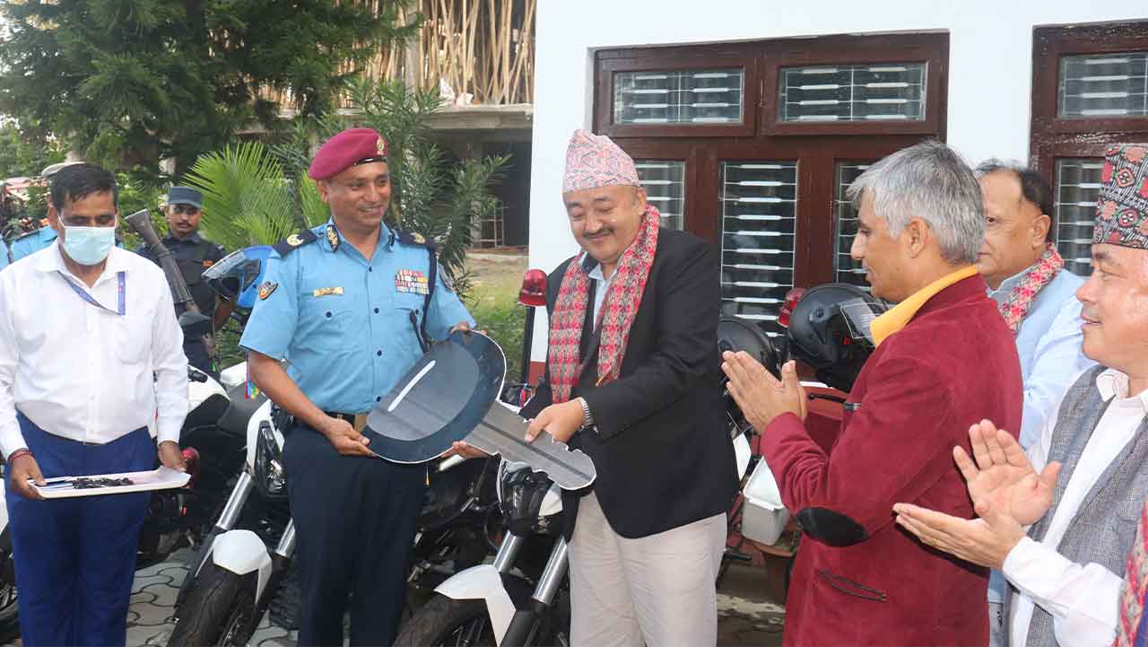 प्रदेश सरकार आन्तरिक मामिला तथा कानून मन्त्रालयबाट खरिद भएका ६ थान मोटरसाइकल प्रहरीलाई हस्तान्तरण गरिएको हो । मोटरसाइकल ग्रहण गर्दै प्रदेश नं १ प्रहरी कार्यालयका प्रमुख सुदीप गिरिले सरकारलाई धन्यवाद दिए । ट्राफिक प्रहरीलाई यातायात व्यवस्थापनमा कठिनाइ भइरहेको अवस्थामा प्रदेश सरकारको सहयोगले राहत पैदा भएको उनको भनाई छ । मोटरसाइकल वितरण अगाडि प्रदेशको सडक सुरक्षाका बारेमा प्रस्तुतीकरण गरिएको थियो ।