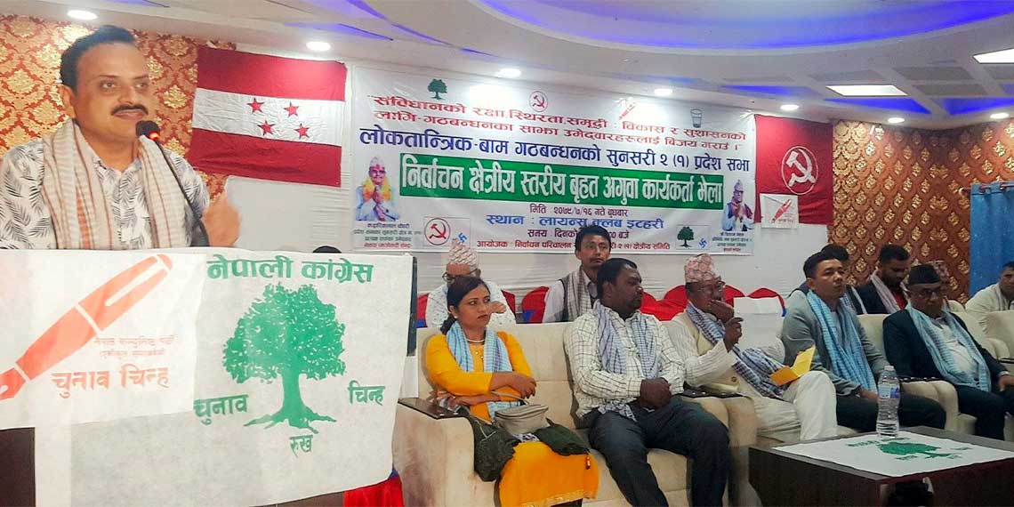 उनले गठबन्धनको विषयमा भ्रमितमा नपर्न आग्रह गर्दै चुनाव जिताउन आग्रह गरे । उनले भने, ‘मुलुकलाई समृद्विको यात्रामा अगाडि बढाउन पनि गठबन्धन आवश्यक छ ।’ कार्यक्रममा सत्ता गठबन्धनको तर्फबाट सुनसरी क्षेत्र नं. २ तर्फ नेपाली कांग्रेसका प्रतिनिधिसभा सदस्यका उम्मेदवार सीताराम मेहता, प्रदेशसभातर्फ सुनसरी २ (क) बाट माओबादी केन्द्रका उम्मेदवार द्वारिकलाल चौधरी, कांग्रेस महाधिवेशन प्रतिनिधि विकास केसी, माओबादी केन्द्र प्रदेश १ का सदस्य उमेश साह, माओबादी केन्द्र इटहरीका इञ्चार्ज मदन चुडाल, कांग्रेस सुनसरी २ (क) का सभापति सुबेक्छु देवान राई लगायतले बोलेका थिए ।