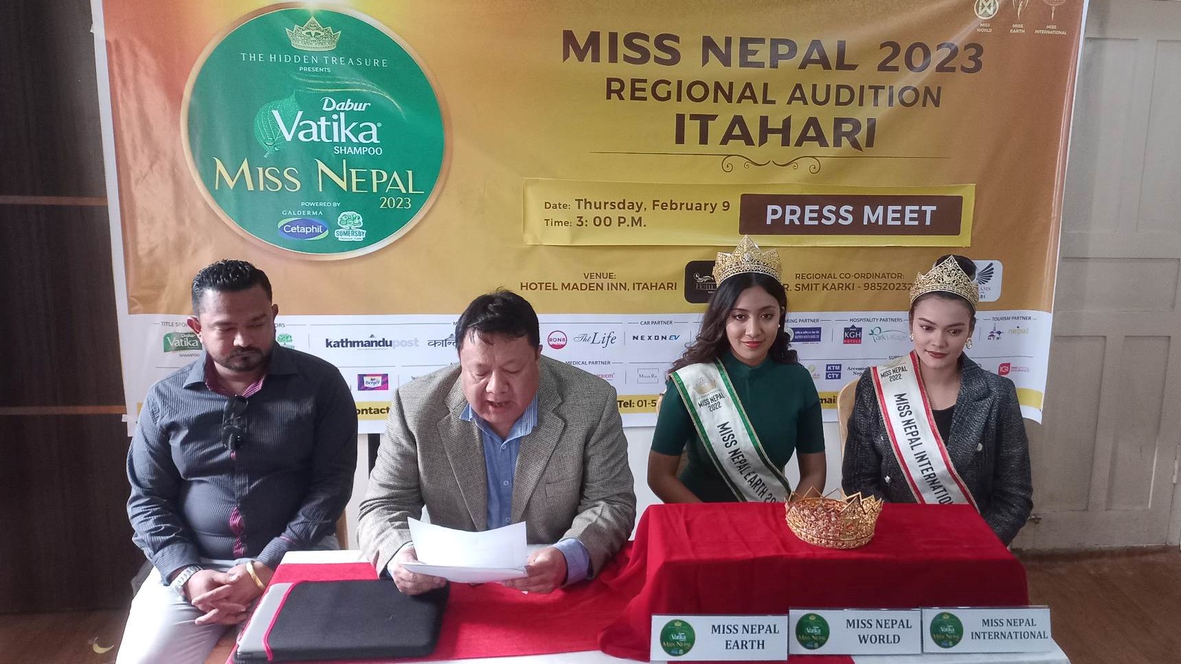 माघ २८ गते शनिबार ‘मिस नेपाल–२०२३’ को पहिलो अडिसन इटहरीमा हुनेछ । पत्रकार सम्मेलनमा ‘मिस नेपाल इन्टरनेसनल २०२२ कि बिजेता न्यान्सी खड्का र ‘मिस नेपाल अर्थ २०२२’ कि बिजेता सरिशा श्रेष्ठ लगाएतको उपस्थिति रहेको थियो ।
