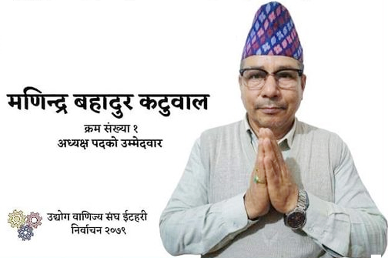 इटहरी । शनिबार (भोलि) उद्योग वाणिज्य संघ (उवासंघ) इटहरीको निर्वाचन हुदैंछ । व्यवसायीका सानादेखि ठूला समस्यालाई मुख्य चुनावी एजेन्डा बनाएर अध्यक्ष पदका लागि जीवन पराजुली, गायत्री कटवाल(भण्डारी), रञ्जु सिग्देल र मणिन्द्रबहादुर कटुवाल प्रतिष्पर्धामा छन् ।