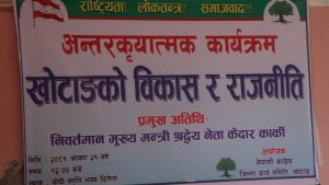 सदरमुुकाम दिक्तेलमा कांग्रेस नेता तथा कोशी प्रदेशका पूर्व मुख्यमन्त्री केदार कार्कीको प्रमुख आतिथ्यतामा आयोजित खोटाङको विकास र राजनीति विषयक अन्तरक्रिया कार्यक्रममा सहभागी अधिकांश वक्ताहरूले भूपेन्द्र राईको आलोचनामा अधिक समय खर्च गरेका थिए । विष्णुराजले नै अगाडि थपे,‘आफू विरोधी साथीहरू हराउन उहाँले जुन भूमिका खेल्नुभएको छ, पार्टीका नियम विपरीतका गतिविधिहरू जसरी गर्नुभएको छ, हामीले कारबाहीका लागि जसरी सिफारिस गरेका थियौँ तर केन्द्रले गरेन अब खोटाङ कांग्रसले उहाँको क्रियाशीलता नवीकरण गर्दैन ।’