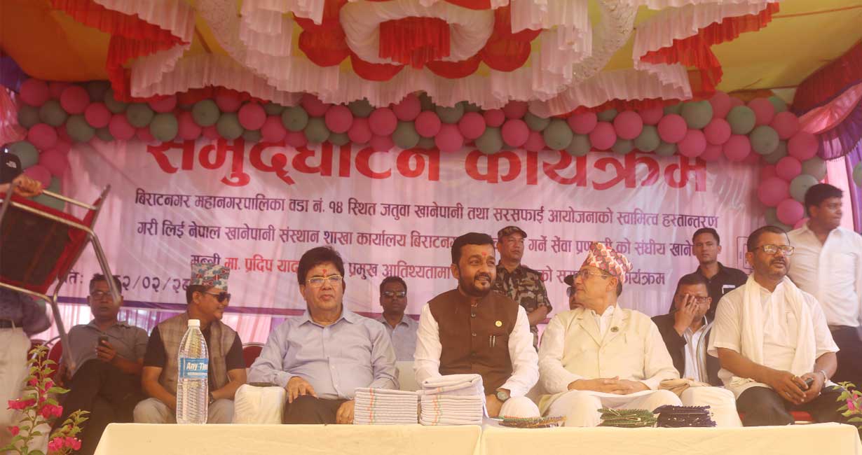 बुधबार बिराटनगर महानगरपालिका–१४ स्थित जतुवा खानेपानी तथा सरसफाइ आयोजनालाई नेपाल खानेपानी संस्थान, बिराटनगर शाखाको स्वामित्वमा हस्तान्तरण कार्यक्रमलाई सम्बोधन गर्दै मन्त्री यादवले यस्तो बताएका हुन् ।