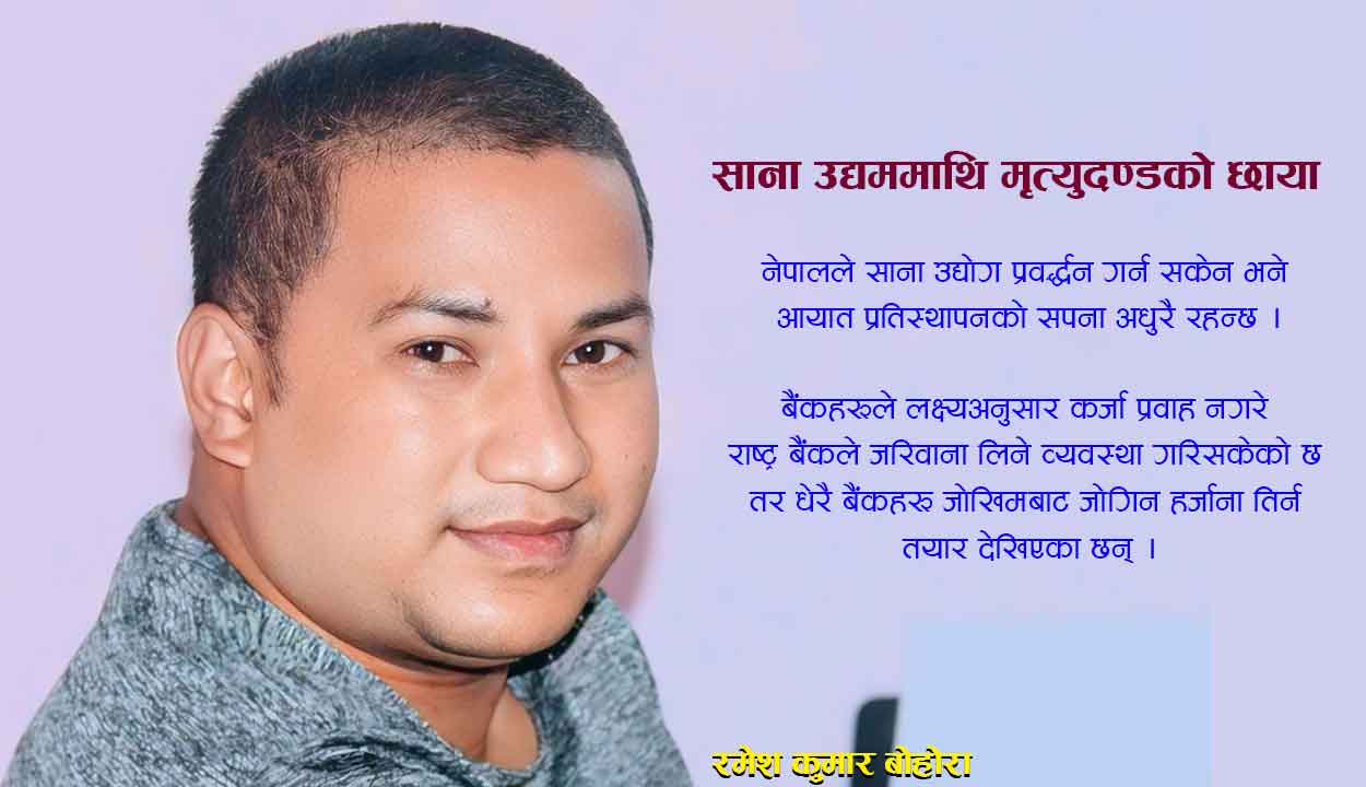काठमाडौं । नेपालको आर्थिक समृद्धि, रोजगारीको सृजना र आयात प्रतिस्थापनको मेरुदण्ड मानिने लघु साना तथा मझौला उद्यम आज नीति–निर्देशनको प्राथमिकता भित्र पर्दा पर्दै पनि कर्जाको अभावमा सङ्घर्षरत छन् । राष्ट्र बैंकले यो क्षेत्रमा लगानी वृद्धि गर्न बारम्बार बैंक तथा वित्तीय संस्थाहरूलाई निर्देश दिँदै आए पनि व्यवहारमा लक्ष्यअनुसारको कार्यान्वयन हुन सकेको छैन । परिणामतः उत्पादन क्षमताको विस्तार रोकिएको छ स्वरोजगारको अवसर घटेको छ र आर्थिक प्रणाली झन् आयातमुखी हुँदै गएको छ ।